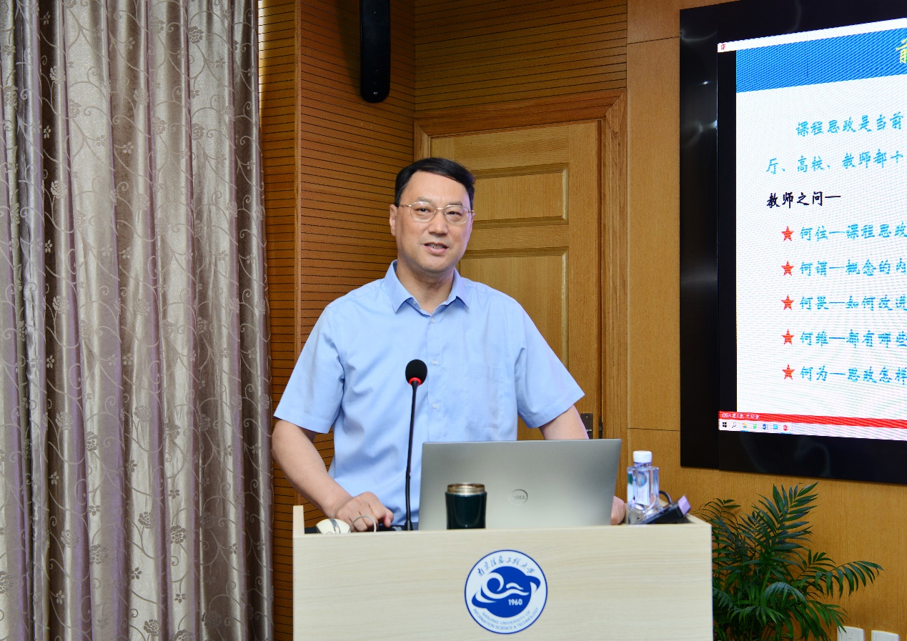 为深入开展主题教育活动,落实好立德树人根本任务,切实提升教师课程思政建设的意识和能力,5月15日上午,物理与光电工程学院邀请学校关工委“行知讲堂”走进学院,校关工委常务副主任,原校党委副书记、副校长王尧教授受邀为学院青年教师作课程思政专题辅导,离退办副主任刘洪清和学院相关领导、全体教师参加了报告会。报告会由院党委副书记徐志勇主持。